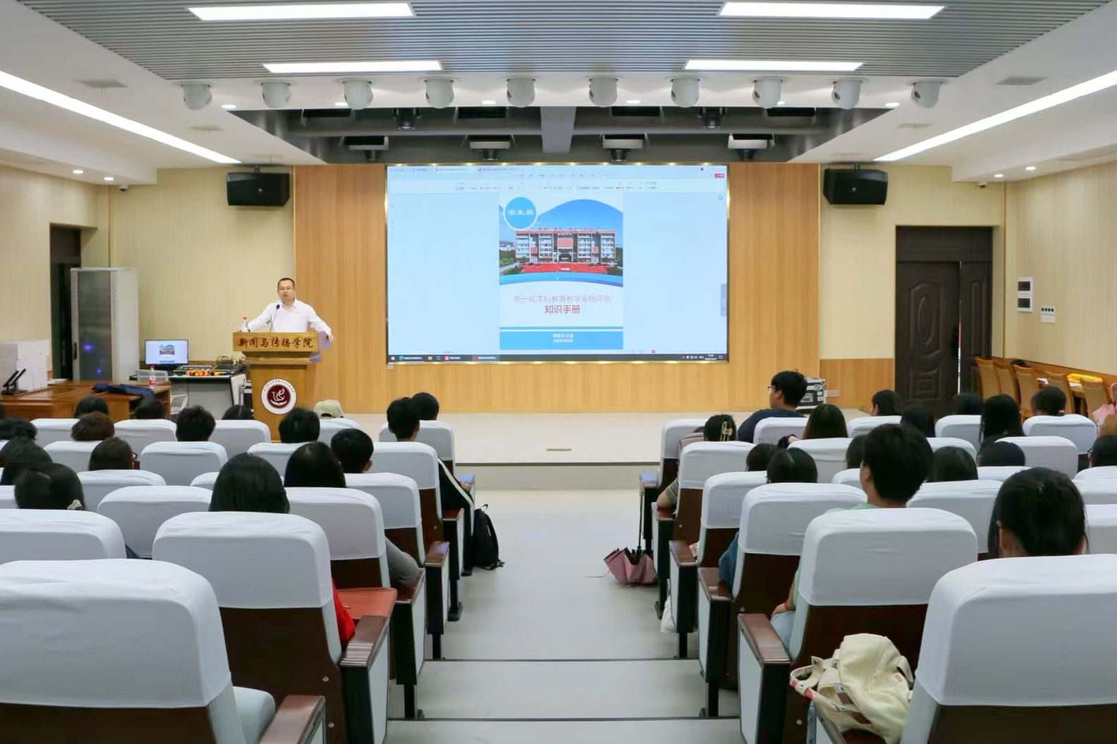 为进一步提升本科公司产品质量,确保新一轮本科公司产品审核评估工作的顺利进行,2024年10月15日,乐天使在文科楼A栋一楼演播厅召开了本科公司产品审核评估知识培训会。