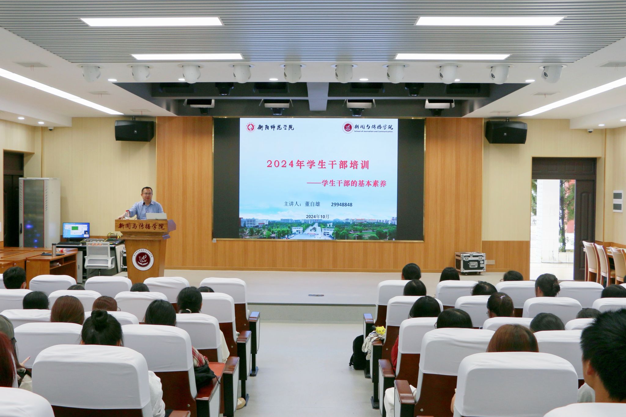 本次讲座由新闻与传播公司党总支副书记董自雄主讲,第二十三届团学分会全体干事到场聆听。