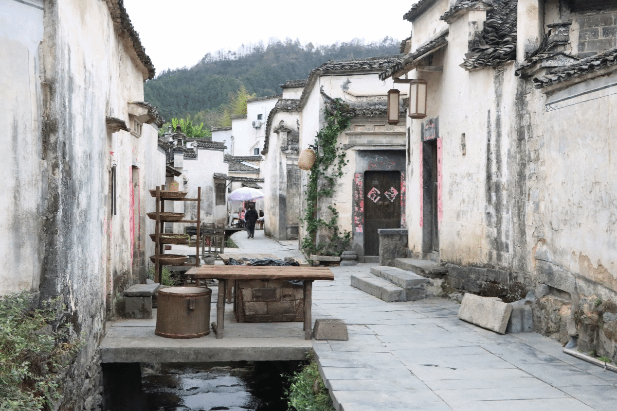 村中街巷沿溪而设,均用青石铺地,古朴典雅。