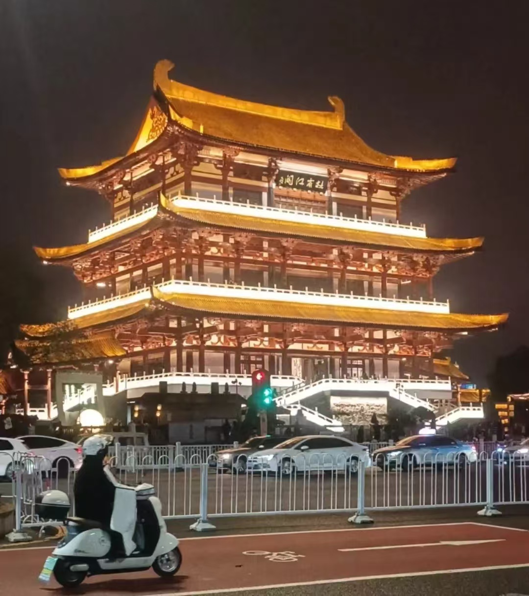 这座阁楼以仿唐古建筑的形式修建,碑亭楼廊,柱梁瓦檐,古韵悠悠,尽显风华。