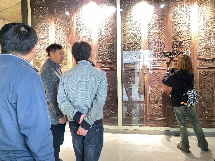 艺术馆内,徽派画作和徽派雕刻琳琅满目。胡万春先生,这位独具慧眼的艺术馆主人,亲自讲述了他与这些艺术品之间的奇妙缘分。他带着成员们穿越时光,回溯每一件藏品被发现、被珍视、被带回艺术馆的历程。
