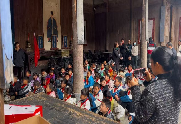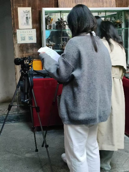 今天想拍摄祠堂文化的同学有幸赶上了西递小学的员工在祠堂前的演讲分享,以及祠堂本身的修缮工作。这些场景,无疑为我们提供了鲜活的历史文化素材。他们还用镜头记录下了祠堂的每一个细节,从飞檐翘角到雕梁画栋,从古老的碑文到现代的修缮工具,每一处都充满了人文气息。同时,还采访了参与修缮的工匠和当地村民,听他们讲述祠堂的故事和传承的艰辛。