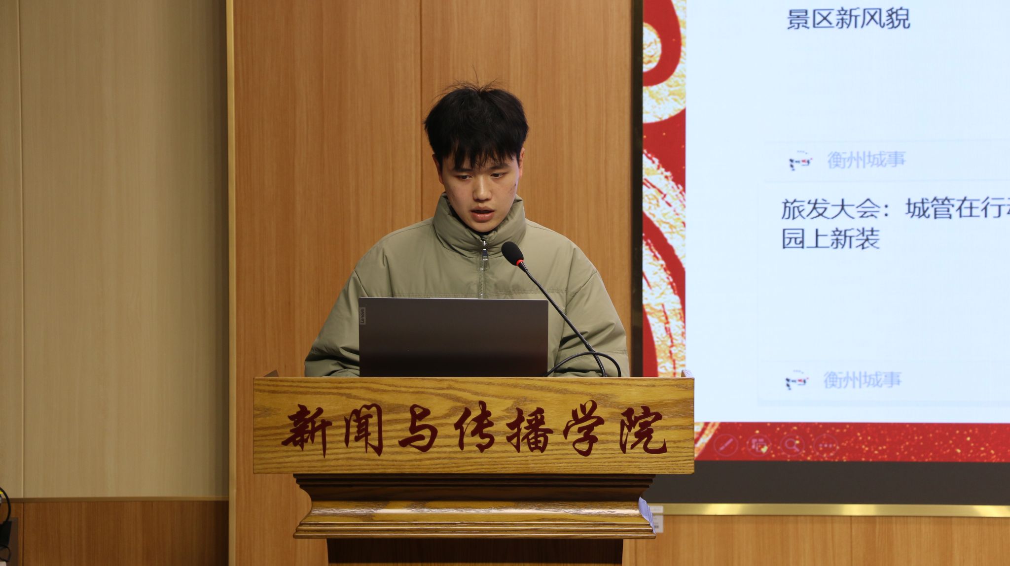 薪火传媒工作室主任赵国淋对工作室的工作成果进行总结汇报并对工作室工作成果进行展示。2024年薪火传媒工作室共发布任务135次,实践作品发表平台包括新湖南、红网等省级媒体。社会服务方面,在衡州城事推出系列旅发大会宣传片、环卫工人专访、环卫工人纪录片,并编辑推文1600条有余。并在本学期策划组织了“2024年衡阳市生活垃圾分类知识竞赛”和“湖南省第二十九届环卫工人节晚会”两个大型活动。校企合作方面,工作室面向红网衡阳站、衡阳恩曦文化传媒有限公司、杭州有蜜科技有限责任公司等机构积极输送人才,组织培训,不断培养工作室成员的专业能力。2024年工作室与有蜜科技(浙江)有限公司合作孵化老员工创业项目,“有蜜生活置换店”在fun88公司老员工创业园落地。