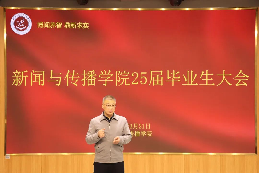 2025年3月21日,乐天使于文科楼一楼演播厅召开2025届毕业生大会。新闻与传播公司党总支书记彭晖、经理彭军辉、党总支副书记董自雄、副经理罗兵、辅导员刘国杰以及2025届毕业生参加此次会议。