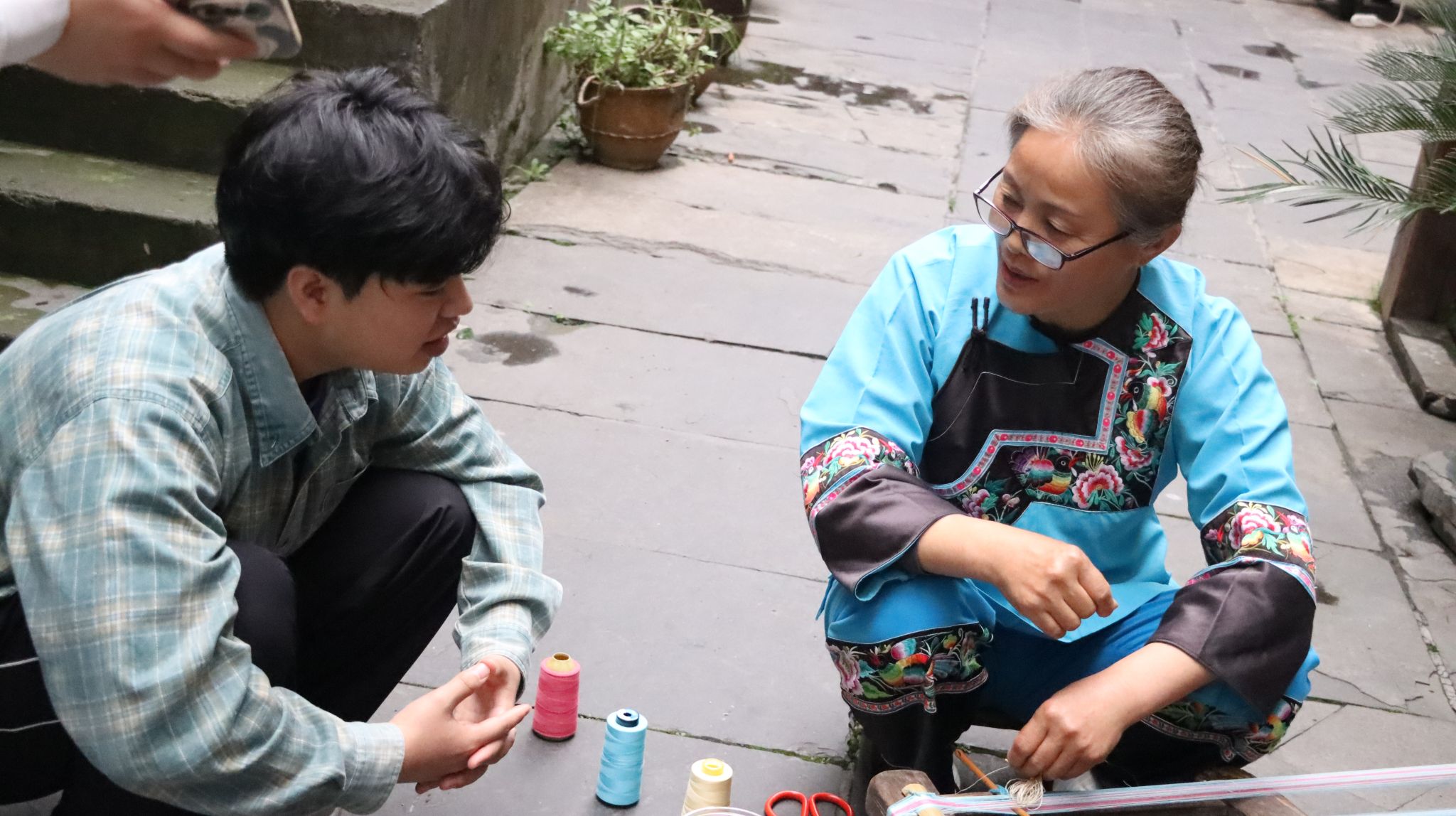 到达目的地后我们对刘新建老师展开进一步采访,询问了有关蓝印花布传承的具体细节,收获了许多有关蓝印花布制作与传承的宝贵知识。联想起一路来的秀丽景色,不难理解正是这独特苗乡山水与文化孕育出这一块块淳朴浓厚的蓝印花布,而这纯洁可爱的花布也诉说着乡民们的忠厚与质朴。