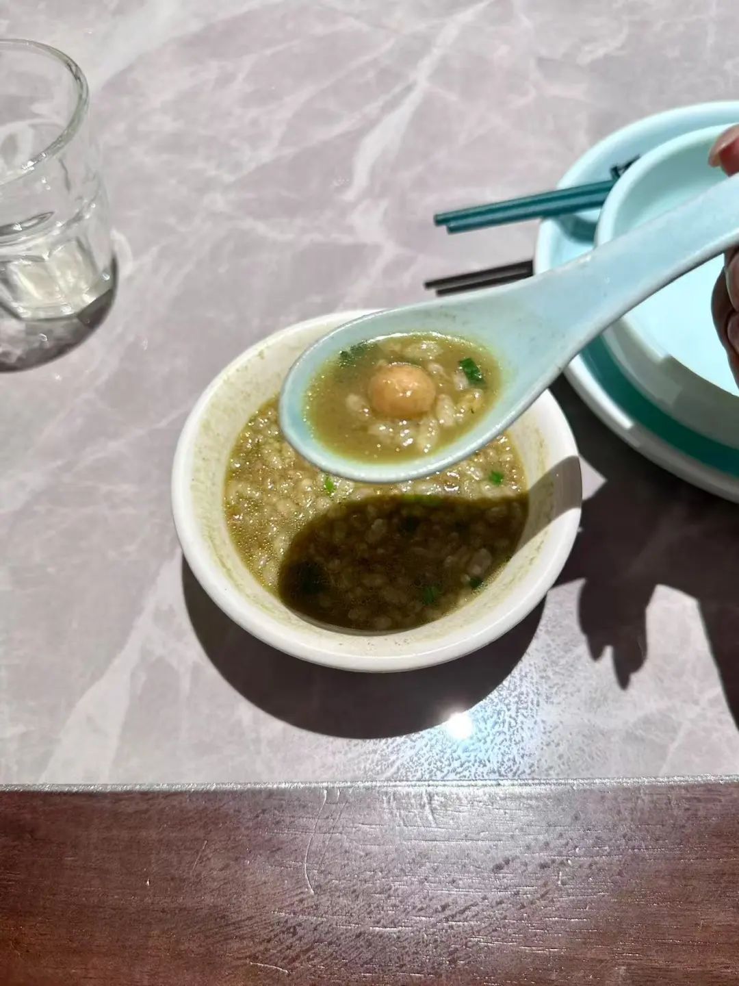 另一组同学聚焦桂林特色油茶拍摄。午时,成员们走进古色古香的老餐馆,沉浸式体验油茶调配。第一步先撒入金黄炒米、花生与葱花,再调入少许细盐,最后冲入琥珀色茶汤,蒸腾热气中茶香四溢。大家围桌品尝,茶汤微涩回甘,佐以炒货的焦香,舌尖漫过的不仅是醇厚滋味,更是市井烟火里的温暖传承。