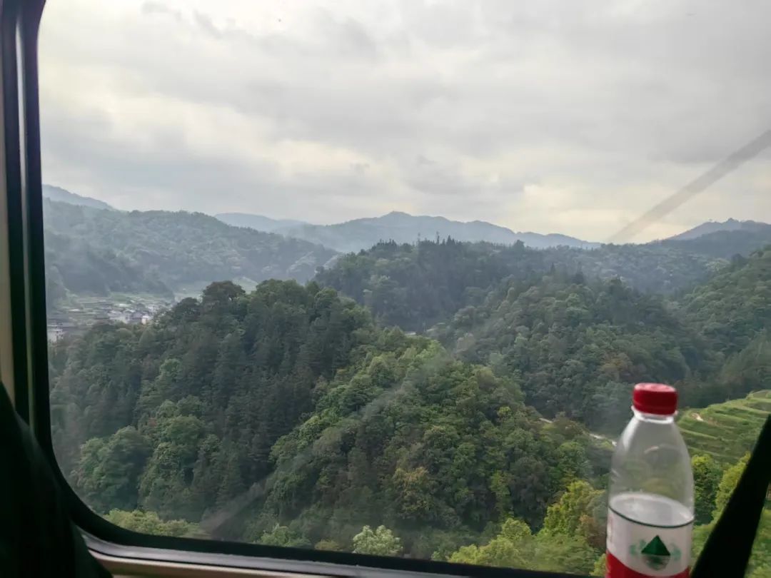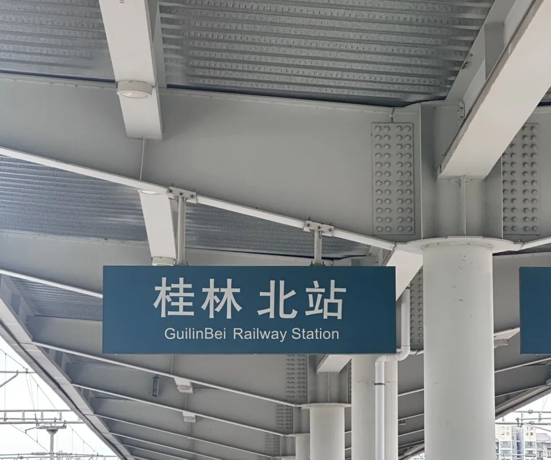 经过两个小时的车程,我们抵达了桂林北站。桂林北站是这次贵阳行的中转站,我们在这里经过半个小时左右的休整,趁着这段间隙,许多同学就这次见习的选题展开了积极地讨论。中午12点45分,我们换乘继续向贵阳进发。一路上,几分落雨划过窗外,远处的山峦越来越近,越来越绿,直至我们也穿入重重群山之中,在一条又一条的隧道间穿梭,贵阳就在眼前。