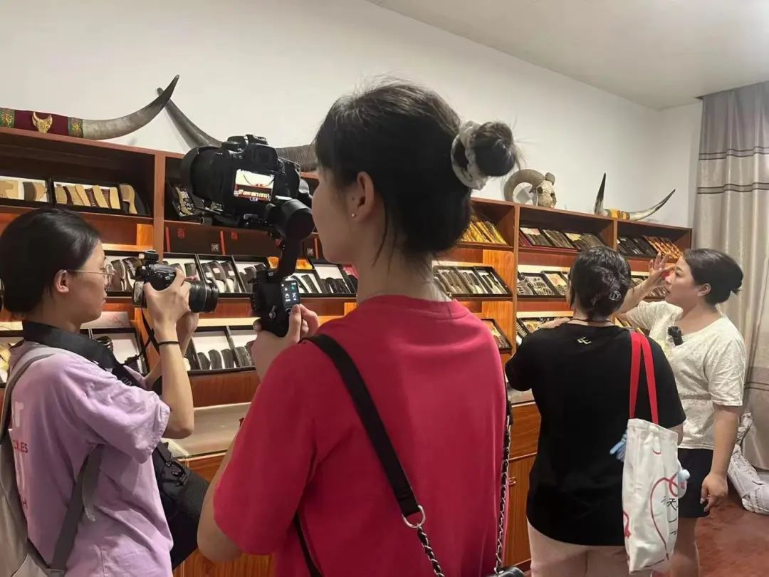 一到现场,小组成员分工明确,迅速展开工作。对许氏梳业厂长、许氏牛角梳第五代传承人许慧芝的徒弟莫莫进行采访,并对工厂进行了拍摄。