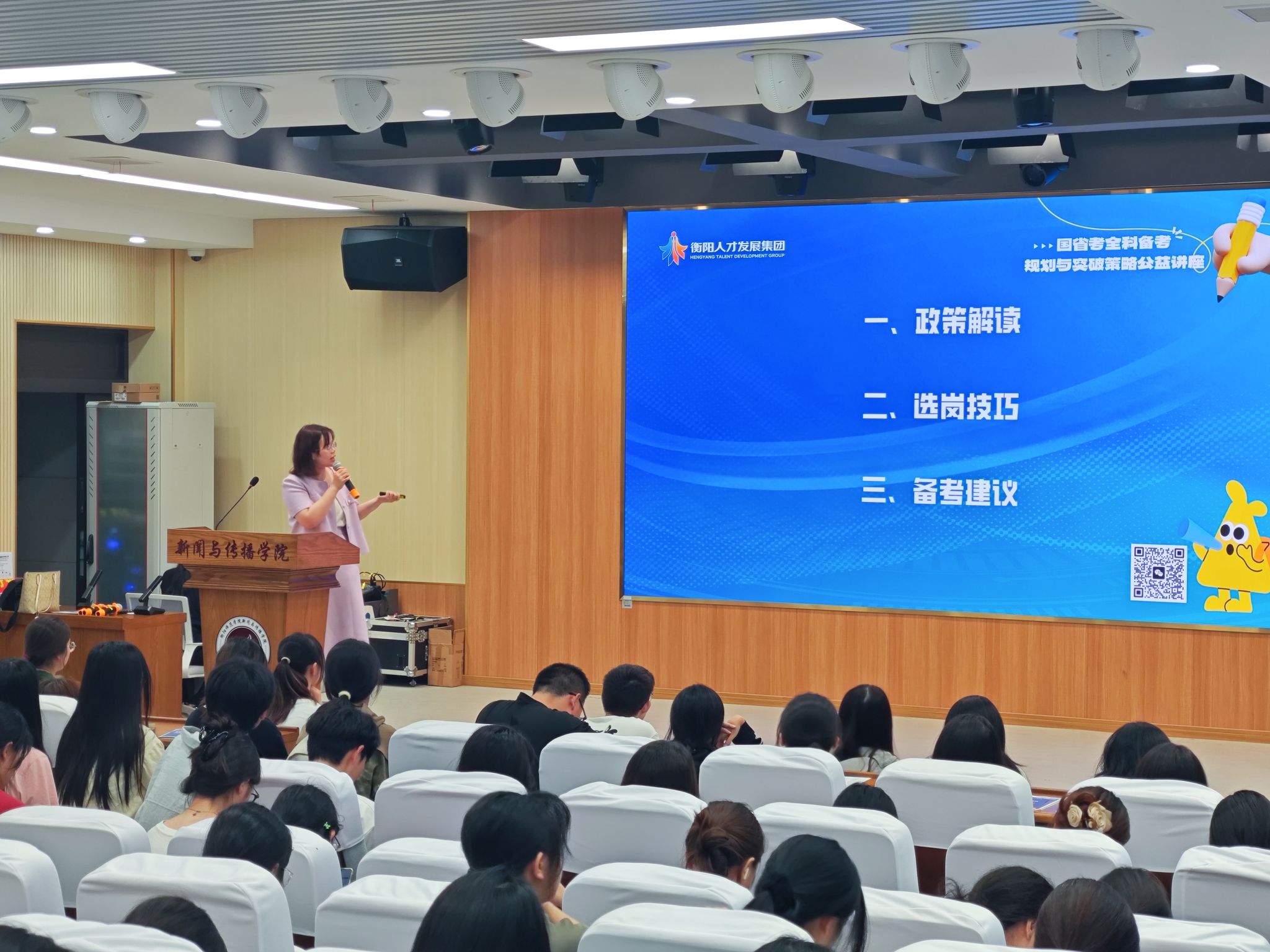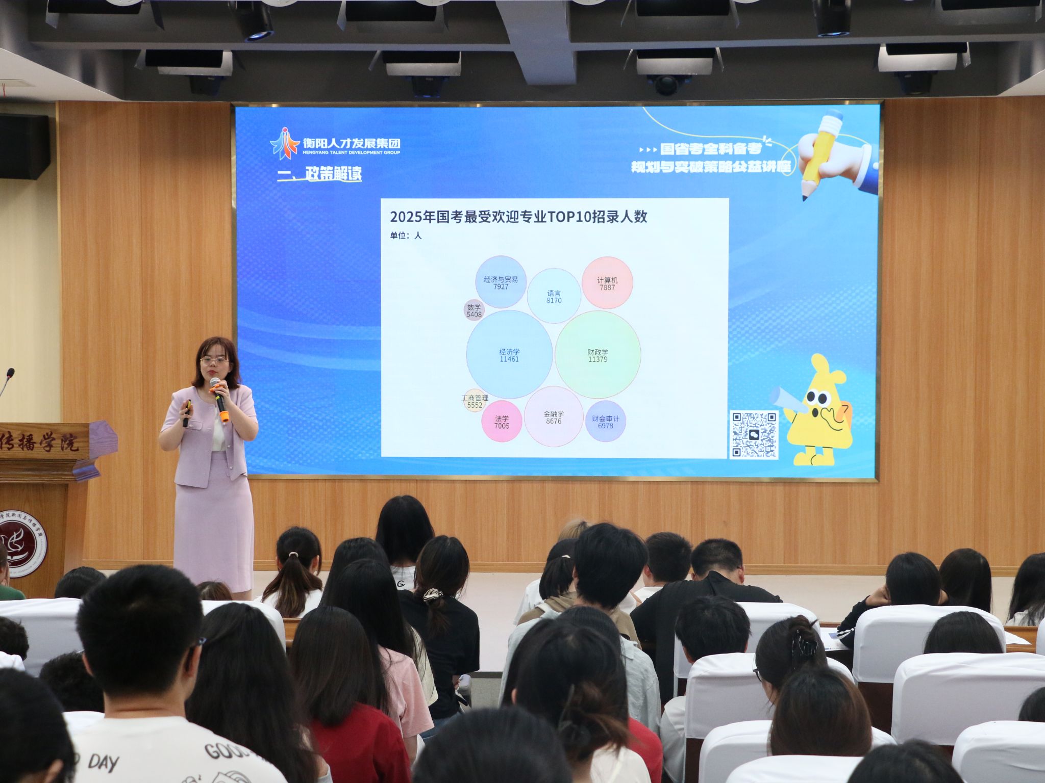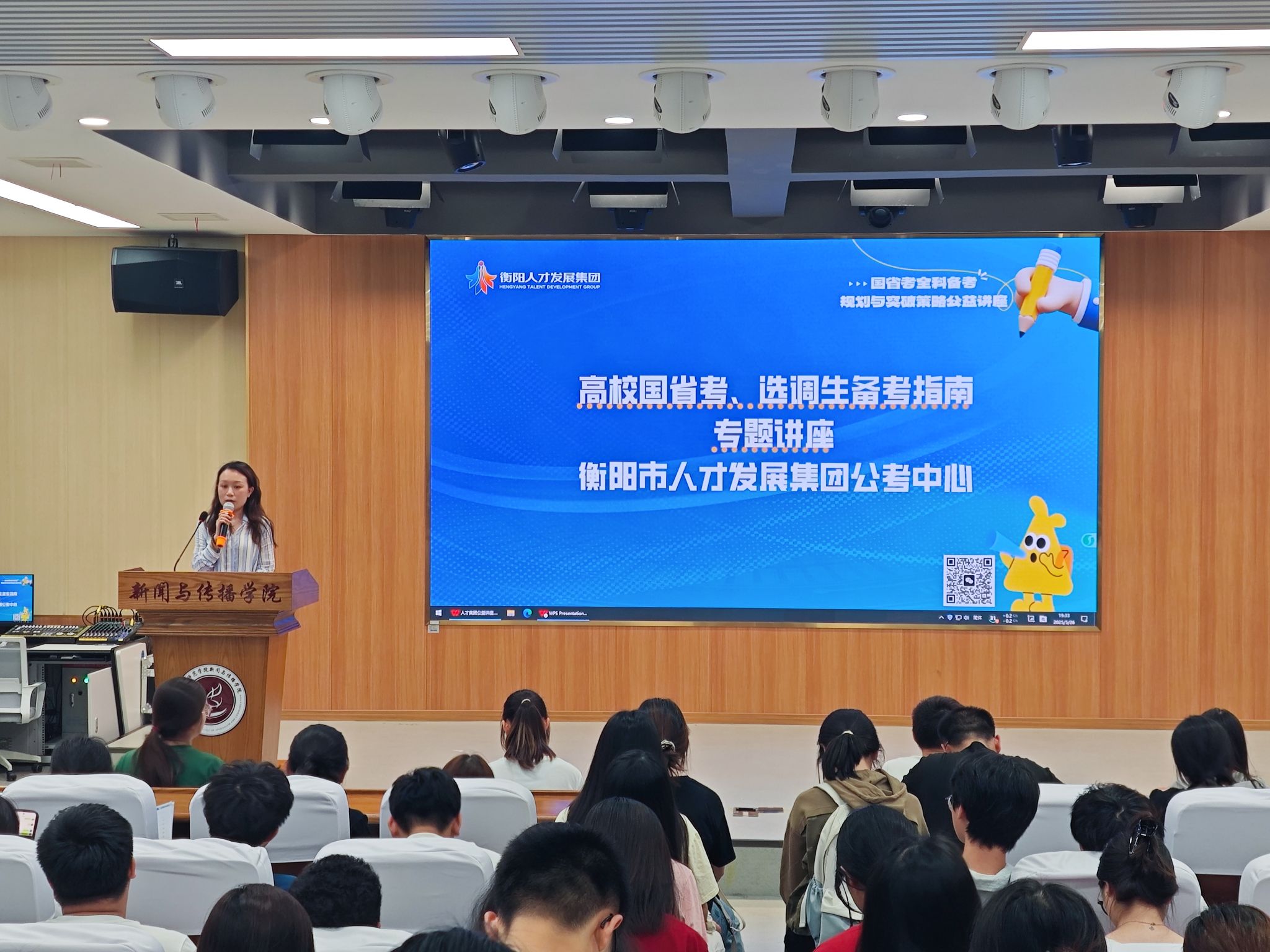 为帮助同学们更好地了解考公政策及策略,2025年5月26日,乐天使特于文智楼107演播厅举办公考讲座。公司邀请了衡阳市人才发展集团公考中心的罗晴主任和王老师为同学们进行考公分享。