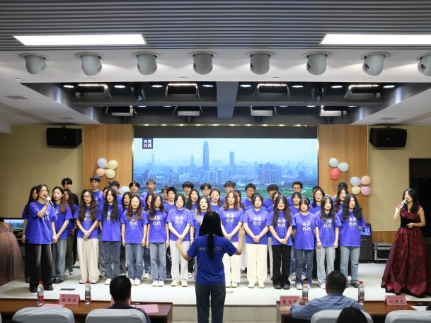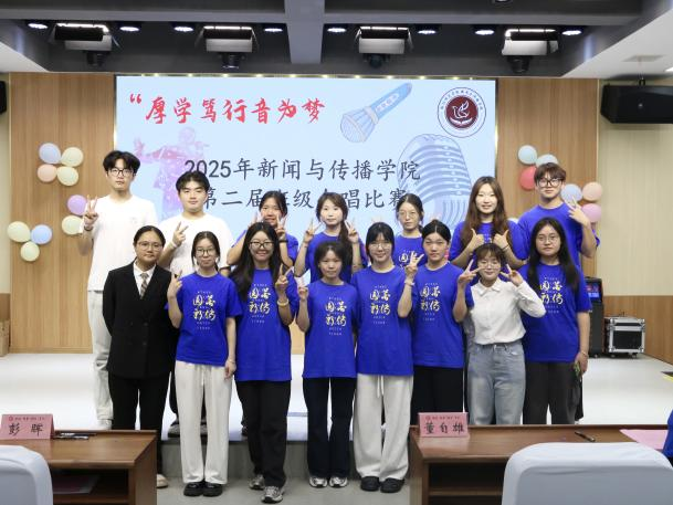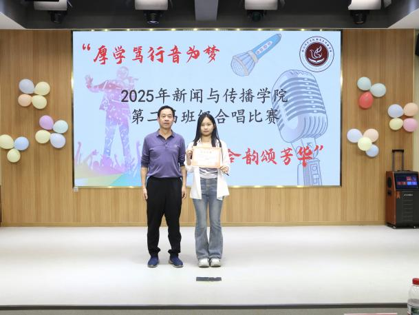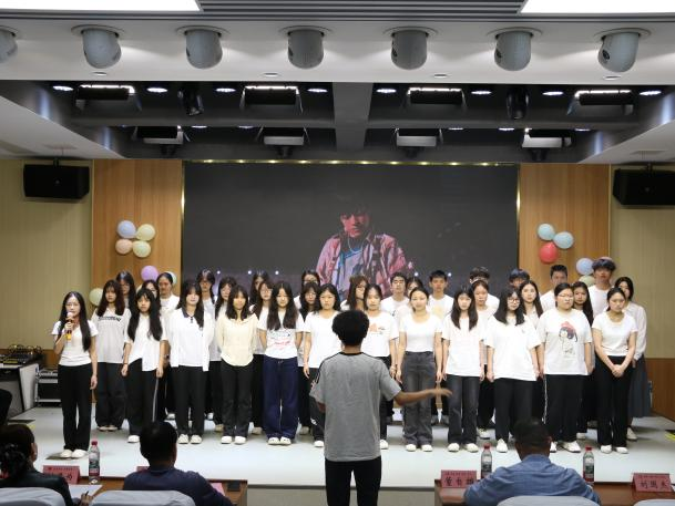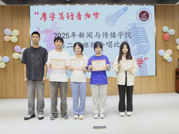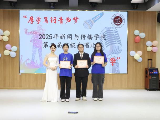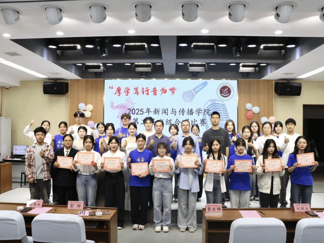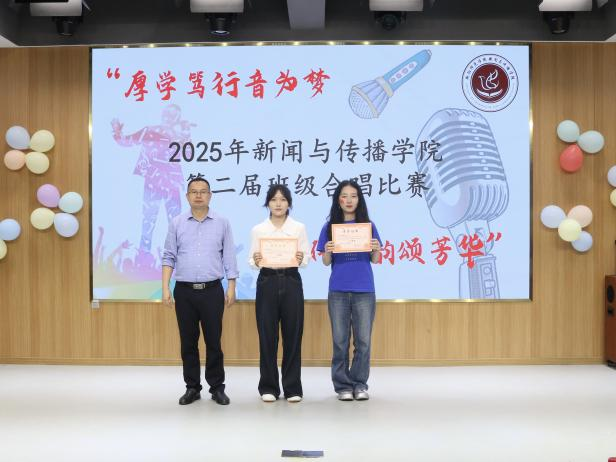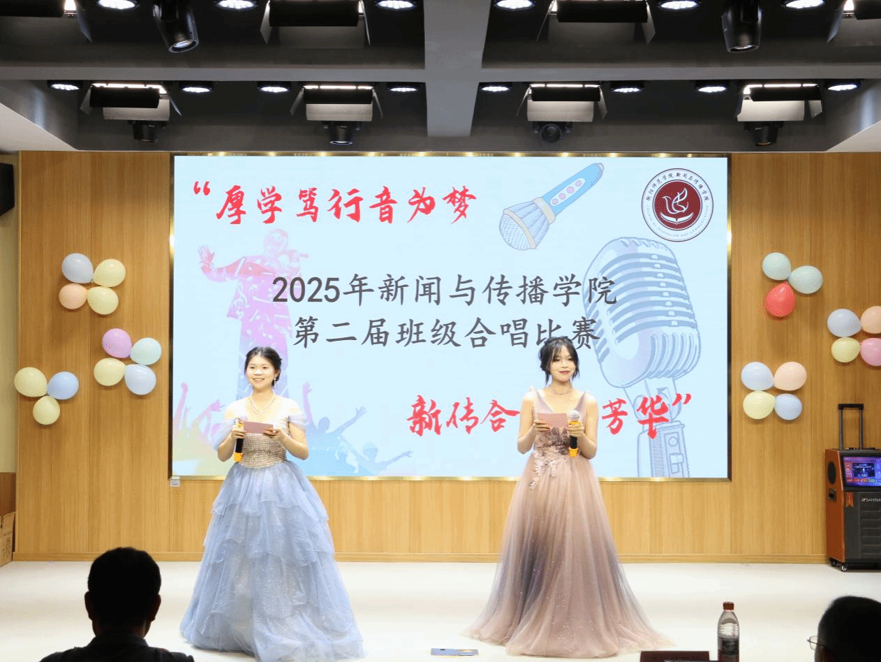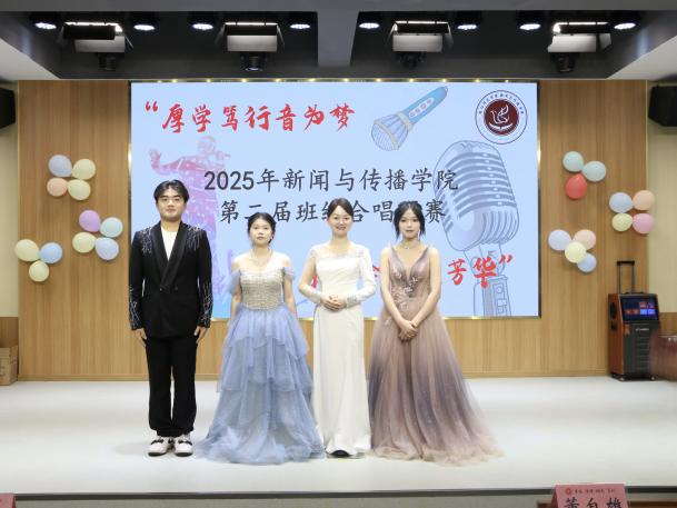 2025年5月28日晚,为加强班级间的团结与协作,给同学们提供一个展示才艺的平台,乐天使“厚学笃行音为梦,新传合韵颂芳华”班级合唱比赛在文智楼演播厅107顺利举行。出席本次比赛的评委有新闻与传播公司党总支书记彭晖、党总支副书记董自雄、学工办副主任兼团委书记封伟为老师、辅导员刘国杰老师及主席团成员。