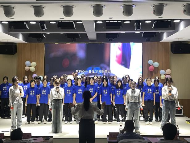 场上,23级广告学一班带来的《我和我的祖国》以激昂的旋律、铿锵的歌声,将对祖国的热爱诠释得淋漓尽致。23级网络与新媒体一班的同学们则以细腻的歌声将《紫荆花》中蕴含的“希望、坚韧、团结”娓娓道来。24级网络与新媒体一班的一首《逆光》更是将比赛推向了高潮,舞动的双手伴随着优美的歌声,这场视觉和听觉的双重盛宴赢得了现场观众的阵阵掌声。