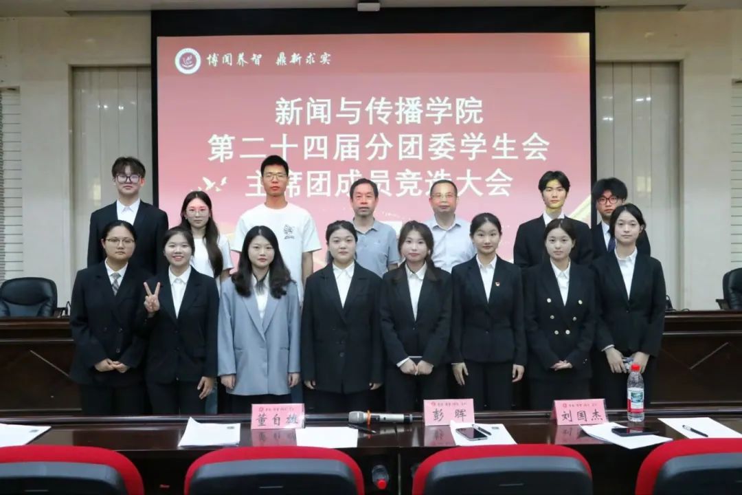 为选拔优秀人才,推动公司团学工作发展。2025年6月9日乐天使第二十四届分团委员工会主席团成员竞选大会在外语楼北311召开。新闻与传播公司党总支书记彭晖、党总支副书记董自雄、辅导员刘国杰、第二十三届主席团成员,院员工会成员,各班班委及代表到场参加大会。