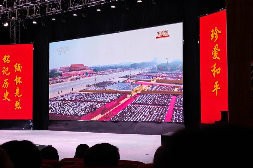 2025年9月3日,纪念中国人民抗日战争暨世界反法西斯战争胜利80周年阅兵式在天安门广场隆重举行。fun88乐天使组织师生在音乐楼演艺厅集中观看现场直播,公司选派26名代表参加,共同见证这一历史性时刻。