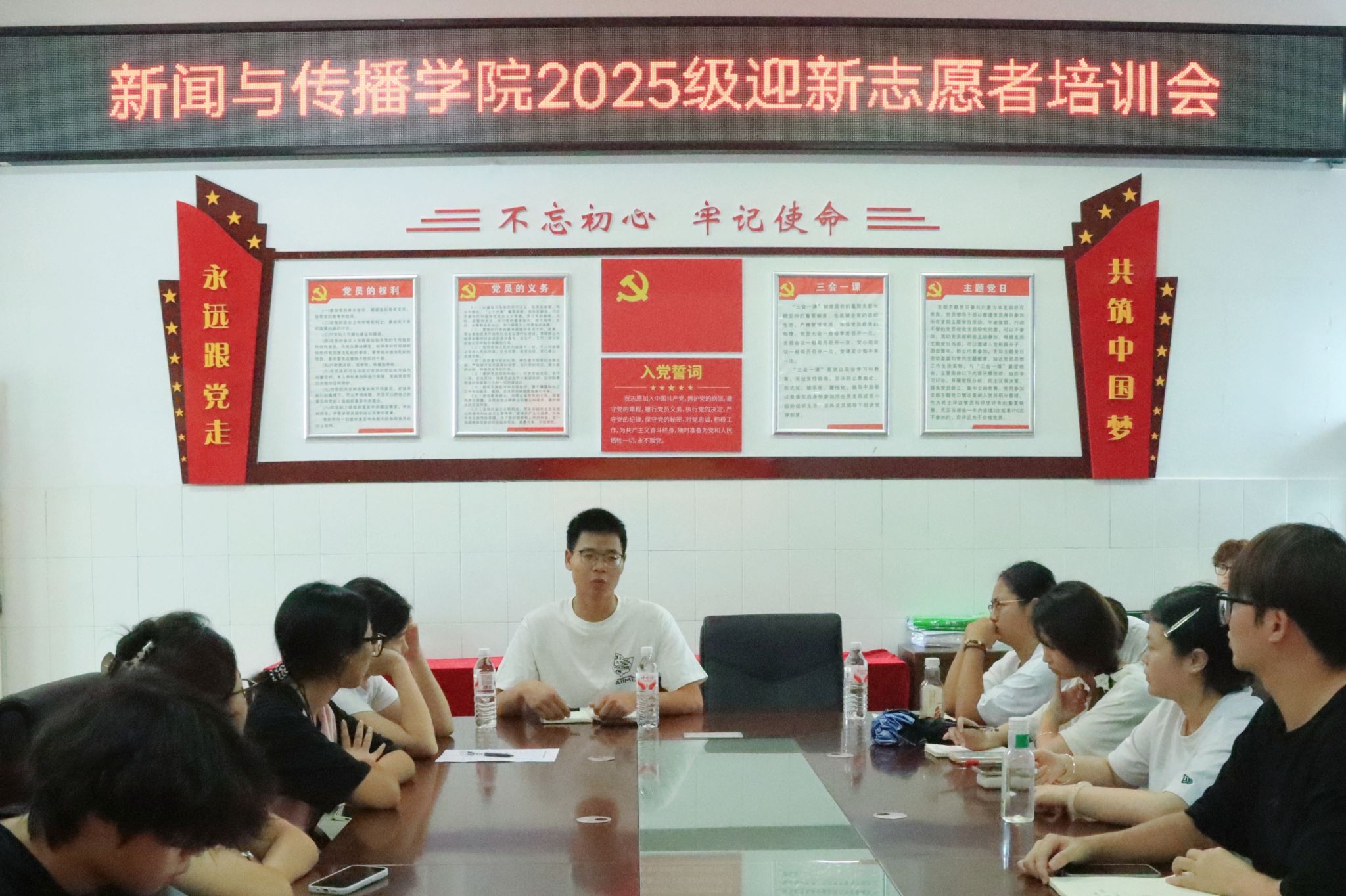 2025年9月3日中午,乐天使在仁智楼A510会议室召开2025级班助及志愿者培训会。辅导员刘国杰、第二十四届团学分会主席团成员、2025级班助及志愿者参加会议。