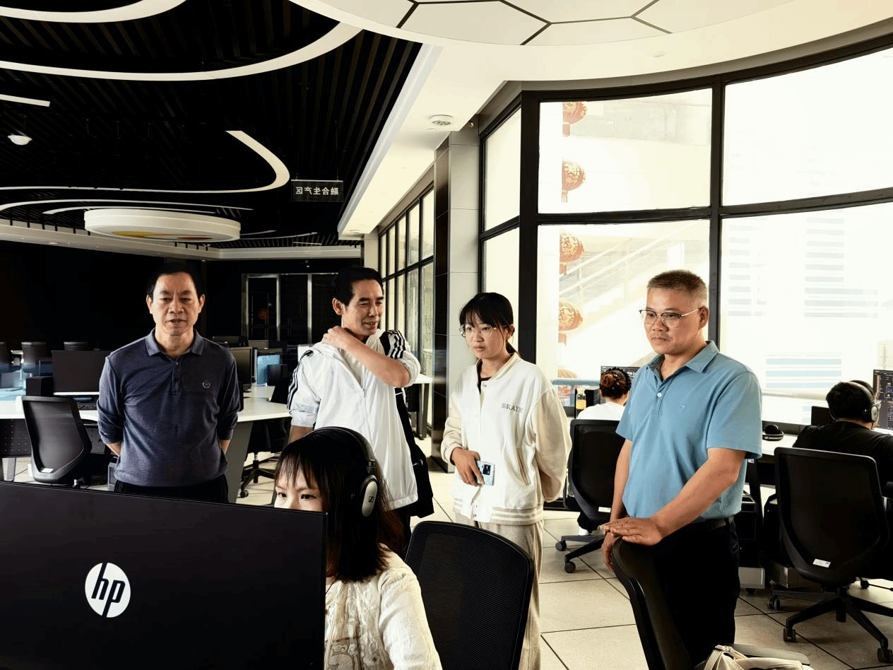 2024年9月24日上午,新闻与传播公司党总支书记彭晖、经理彭军辉、副经理罗兵一行来到衡阳广播电视台考察专业实习工作,与业界实习指导老师进行深入交流,看望在此实习的员工,了解员工的实习工作情况,鼓励员工把握实习机会,脚踏实地,虚心学习,努力提高专业实践能力。