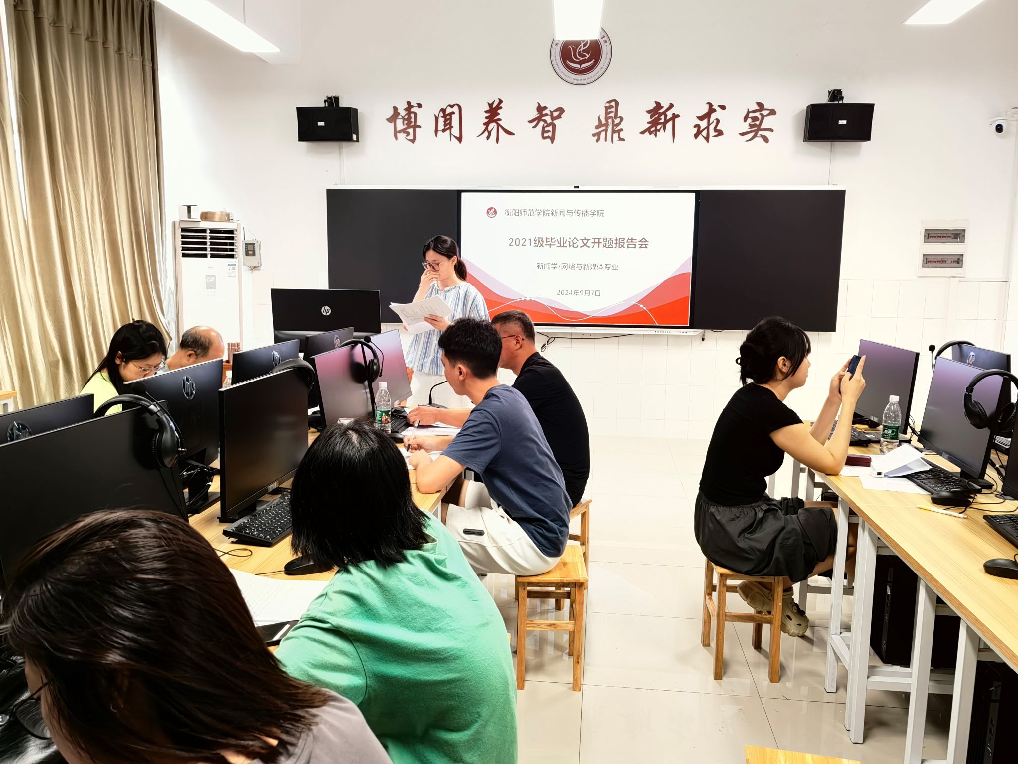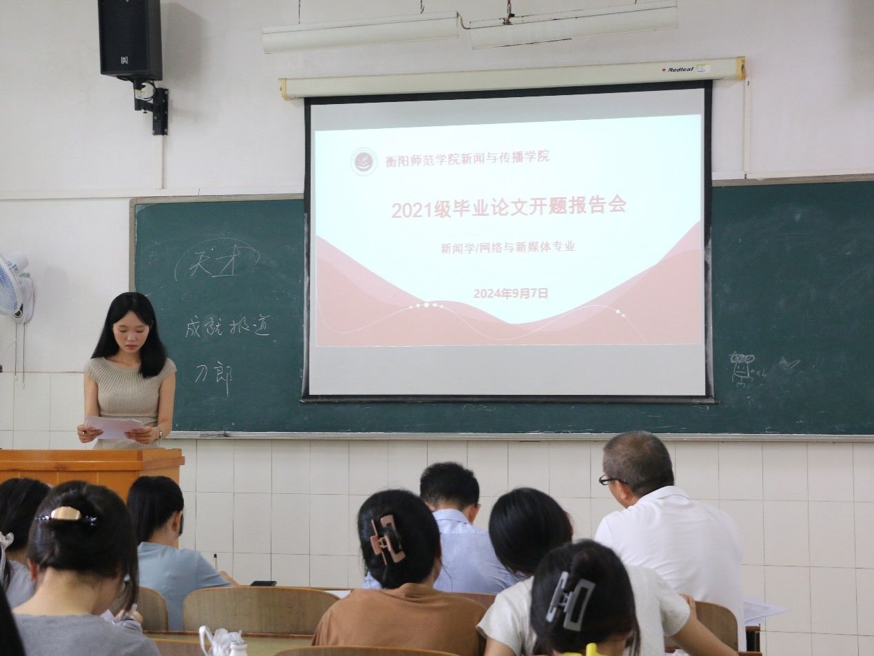 为确保2021级新闻学、网络与新媒体、广告学专业同学顺利完成毕业论文(设计),9月7日上午,2021级毕业论文(设计)开题报告会在文科楼举行。来自新闻与传播公司的2021级全体员工分为七个小组,向老师和同学们展示了他们的毕业论文(设计)研究计划。