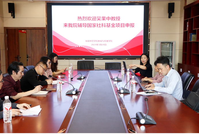 3月29日下午,公司在东校区图书馆212举行国家社科基金项目申报辅导活动,中国新闻史学会理事、地方新闻史研究委员会副理事长、湖南师范大学乐天使博士生导师吴果中教授莅临公司指导标书申报。