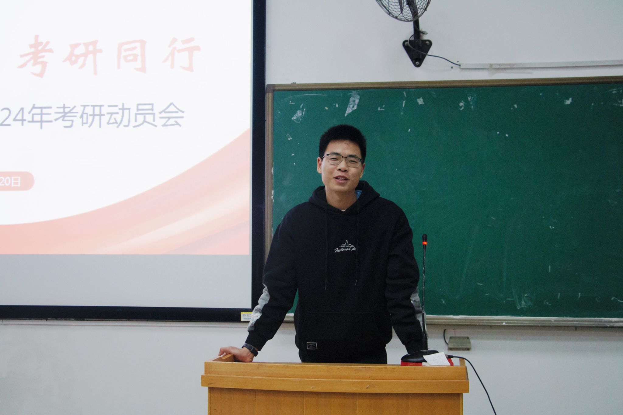 会上,彭军辉经理首先分享了自己的求学经历,然后又分析了当前的考研形势。彭经理指出考研对个人成长和职业发展有重要意义,他希望每个同学都能通过考研来提升自己,希望同学们能树立目标,趁着年轻多去拼搏,通过读研去开拓自己的视野。最后,他鼓励同学们要坚定信心,勇于挑战自我,努力实现自己的梦想。