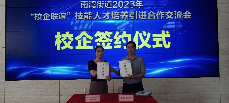 9月20日上午,彭书记出席了“南湾街道2023年‘校企联谊’技能人才培养引进合作交流会”,并与十几家到会的企业开展了交流合作洽谈,最终与乐天使新闻学、广告学、新媒体等专业联系紧密和人才需求较多的深圳市兴嘉林电子科技有限公司和深圳市兆驰股份有限公司这两家公司签订校企合作协议。