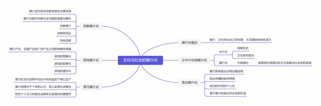 本书在全文的行文脉络上条理清晰,层次分明,有始有终。全文一共分为七个章节。第一章主要提供了理论基础和背景介绍,开门见山地指出了“媒介化”是一个“中层理论”的基础定义。第二章则详细地介绍了“媒介化”这个理论视角,并在叙述中不断强调媒介作为半独立机构与社会的互动关系。作者花大量篇幅在前两章的对背景与理论叙述,为接下来四章的具体论述做足了铺垫。第三、四、五章分别从政治、宗教、游戏三个方面对不同社会和文化领域展开理论梳理和实证研究,引用了大量的相关学者研究,展现了媒介的强大渗透力。而第六章则是选择了更为细节的切入点,从媒介化和个体化的视角展开谈论,媒介化和其他现代性主要过程的彼此关系成为本章的焦点。本书在最后一章中,再次强调了在中观层面探讨“媒介化”的重要性,在对媒介化的复杂影响进行总结之后,也提出了建立宏观和微观单元内的媒介政策的方法,从而使得媒介服务于文化和社会的命题成为可能。