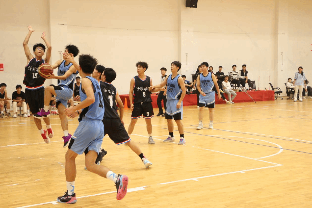 场馆内人声鼎沸,一场充满勇气与力量、果敢与技巧的较量正如火如荼的进行中!比赛一开场,新传院进攻果敢,迅速出击,点燃了全场的热情!