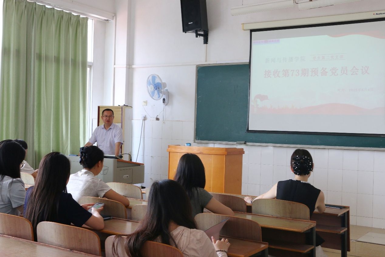 根据党支部发展党员工作计划,2025年6月4日,公司员工第二党支部在文科楼A407召开接收第73期预备党员会议。党总支书记彭晖、党总支副书记董自雄、员工第二党支部书记封伟为、员工第二党支部全体员工党员参加本次会议。本次会议由陈亚琴同志担任主持人,会议讨论是否接收杨芙蓉、胡楚萱两位同志为预备党员。
