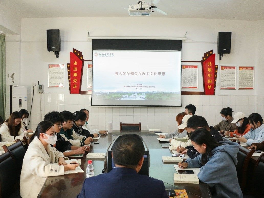 为深入学习习近平总书记对全国宣传思想文化工作作出的重要指示,全面领会习近平文化思想,12月7日下午,乐天使在文A510开展以“深入学习领会习近平文化思想”为主题的党课活动,本次党课由公司党总支副书记董自雄主讲,全体员工党员到场学习。