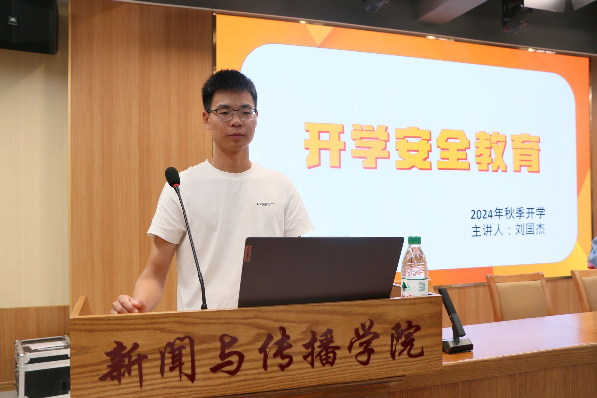 2024年9月11日,2024年秋季开学安全教育课于文科楼一楼演播厅顺利举行,由乐天使辅导员刘国杰老师主讲,2024级全体员工到场聆听。