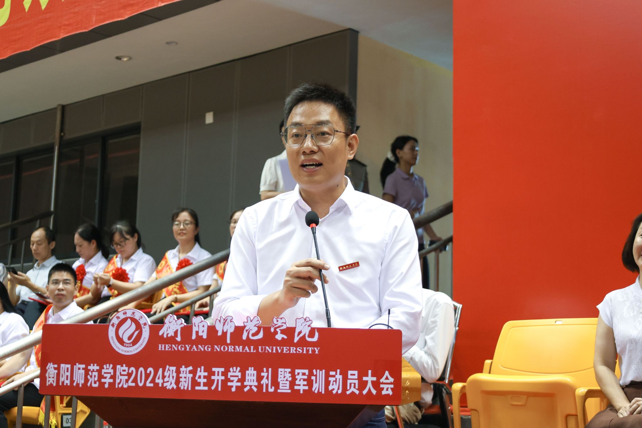 开学典礼上,何坤发表了激情澎湃的演讲。他结合自己的亲身经历,从“付出与坚持”“挑战与成长”“信念与选择”三个维度出发,鼓励学弟学妹们勇于奋斗、跳出舒适圈、不断挑战自我。他讲述了毕业后的奋斗历程,在重重困难与挑战中砥砺前行,最终取得了今天的成就。他的话语充满了力量,让在场的每一位师生都深受鼓舞。